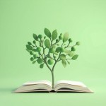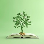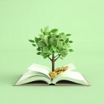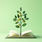 Minimalist Tree of Financial Icons Sprouting from Open Book on Pastel Green Background