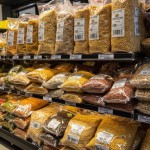 UK Supermarket Shelves with Packaged Nigerian Grains