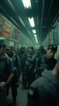 Militarized Underground Train Station with Androids and Propaganda Posters