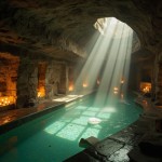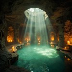 Underground Natural Stone Spa with Glowing Pools and Candlelight