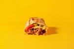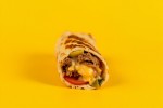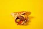 Grilled Wrap with Melted Cheese and Meat on Yellow Background