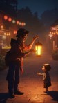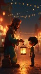 Vendor Giving Glowing Balloon to Sad Child in Plaza Animation