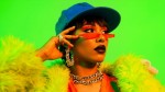 A vibrant and playful studio portrait of a stylish young woman with a bold fashion sense. He wears a fluffy neon green faux fur coat over bright attire, adorned with layered silver chains and rings. On her head she wears a comfortable royal blue cap that complements the warm green background. The lighting is warm and even, highlighting the textures of her outfit and accessories. The overall aesthetic is a mix of contemporary street style, high fashion editorial and pop art influences, creating a visually striking and energetic composition.