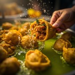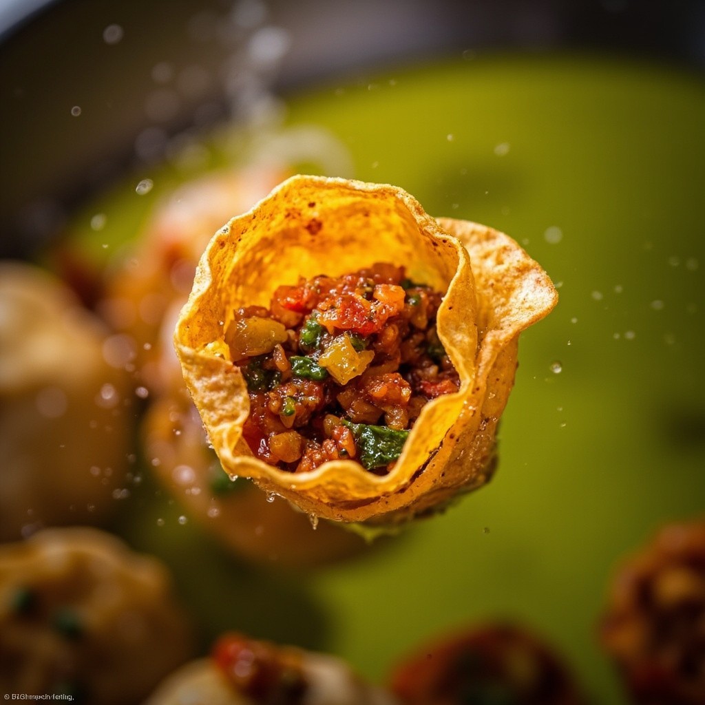 Crispy Golden Golgappa with Spicy Aloo and Mint Water Splash, Indian Street Food