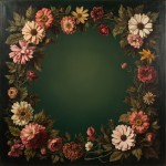 Victorian Style Floral Painting with Dark Green Background and Central Empty Space