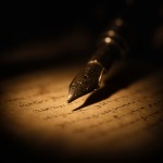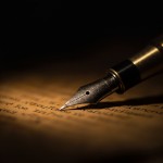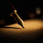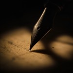 Close-Up Vintage Fountain Pen Nib Touching Aged Parchment