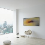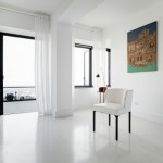 White Penthouse Interior with Vis-a-Vis Designer Chair and Wall Painting