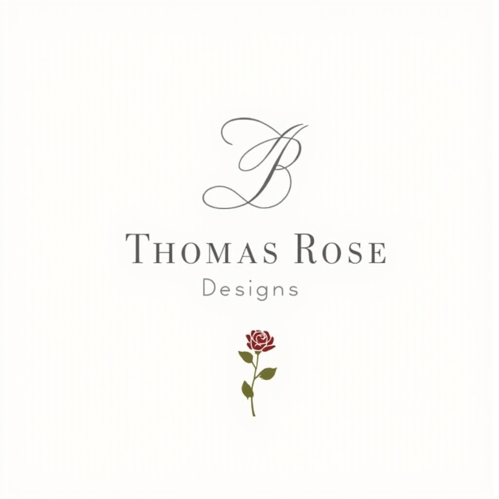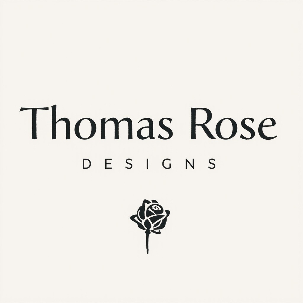 Thomas Rose Designs Business Logo with Horizontal Stem Rose