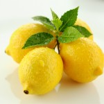 Close-Up Image of Fresh Yellow Lemons with Dewdrops on White Surface
