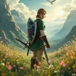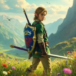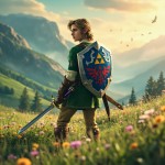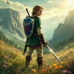 Full-Body Back View of Timothée Chalamet as Link from Legend of Zelda in Mountain Meadow