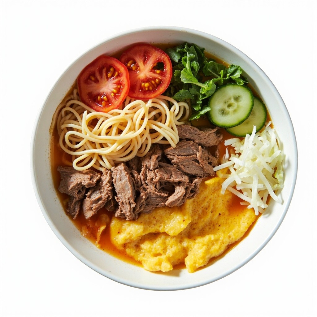 Top View of Korean Kuksi Cold Soup in White Plate