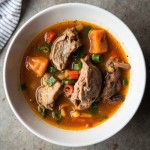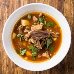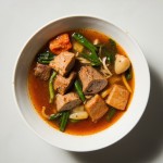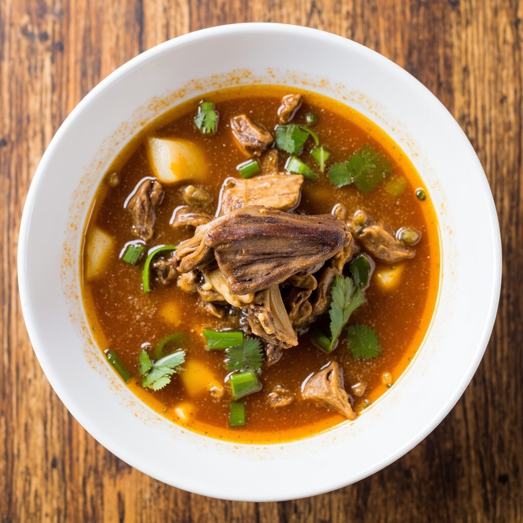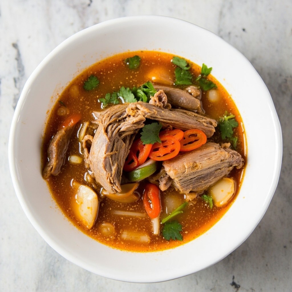 Korean Kuksi Soup with Meat and Vegetables Top View