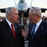 Trump Holding a Fighter Jet with Crowd, Netanyahu and Yair Lapid Behind