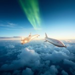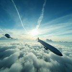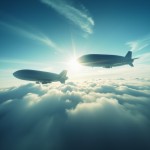 Two Airships Flying Above White Cloud Sea at Dawn