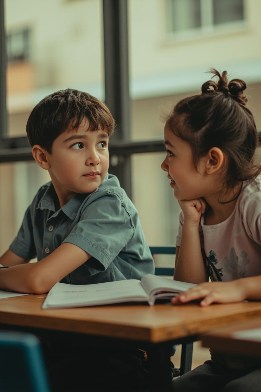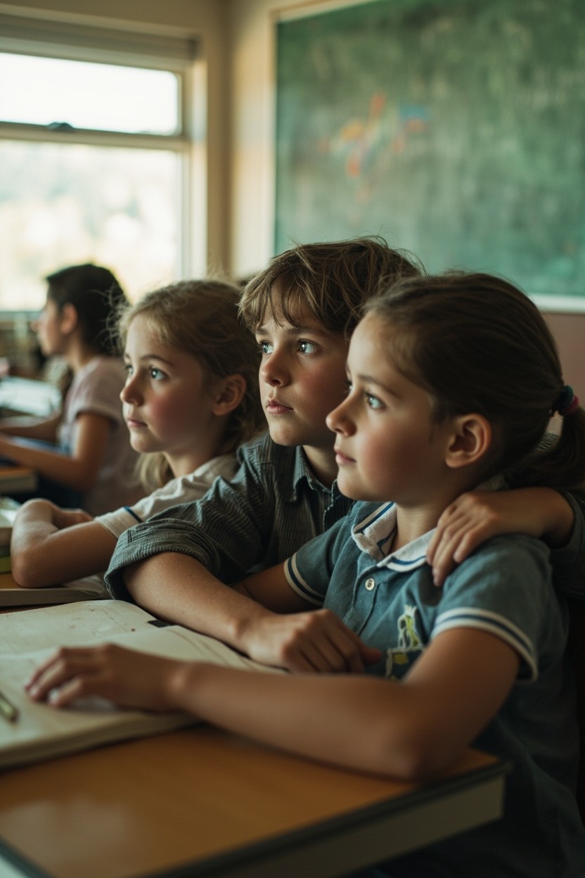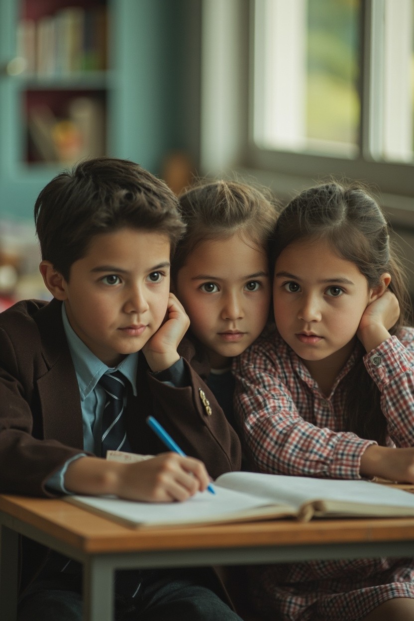 Boys and Girls Sitting at Desks Picture