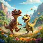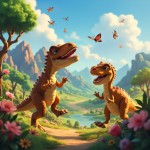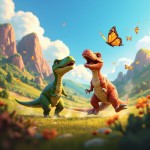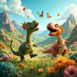 Playful Dinosaurs Chasing Butterflies in Vibrant Valley Animation