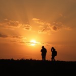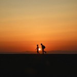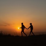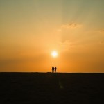 Two People Walking Alone in Vast Fields