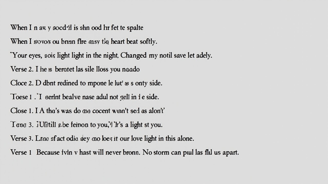Verse 1 Kur të pash për herë të parë, Zemra ime rrahu ngadalë. Sytë e tu si dritë në natë, Më ndryshuan jetën krejt. Verse 2 Buzëqeshja jote si magji, Çdo moment ishte lumturi. Nuk e dita sa fat kam pas, Derisa koha filloi me na nda. Chorus Lumi unë që t’kam pranë, Kur më shikon nuk ndihem vet. Zemra ime vetëm ty të ka, Si një dritë në këtë jetë. Verse 3 Edhe nëse vijnë ditë të vështira, Dashnia jonë s’ka me u nda. Se kur zemrat rrahin njësoj, Asnjë stuhi s’mundet me na nda