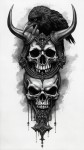 Neo Traditional Raven Face and Viking Skull Tattoo Sleeve Design