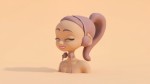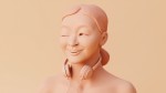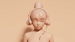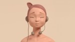 Minimalist 3D Girl Avatar with Geometric Ponytail and Neckband Headphones on Beige Background