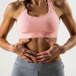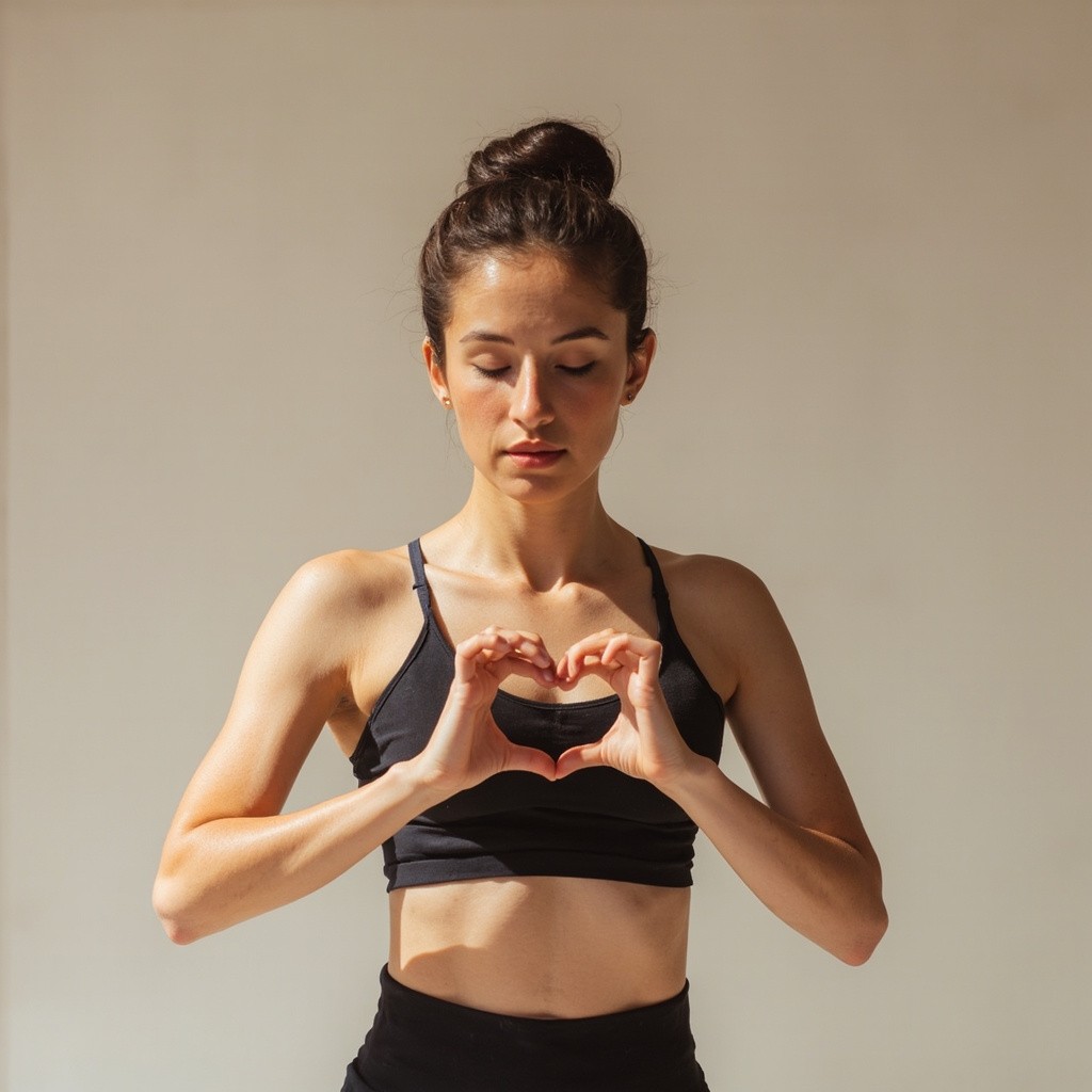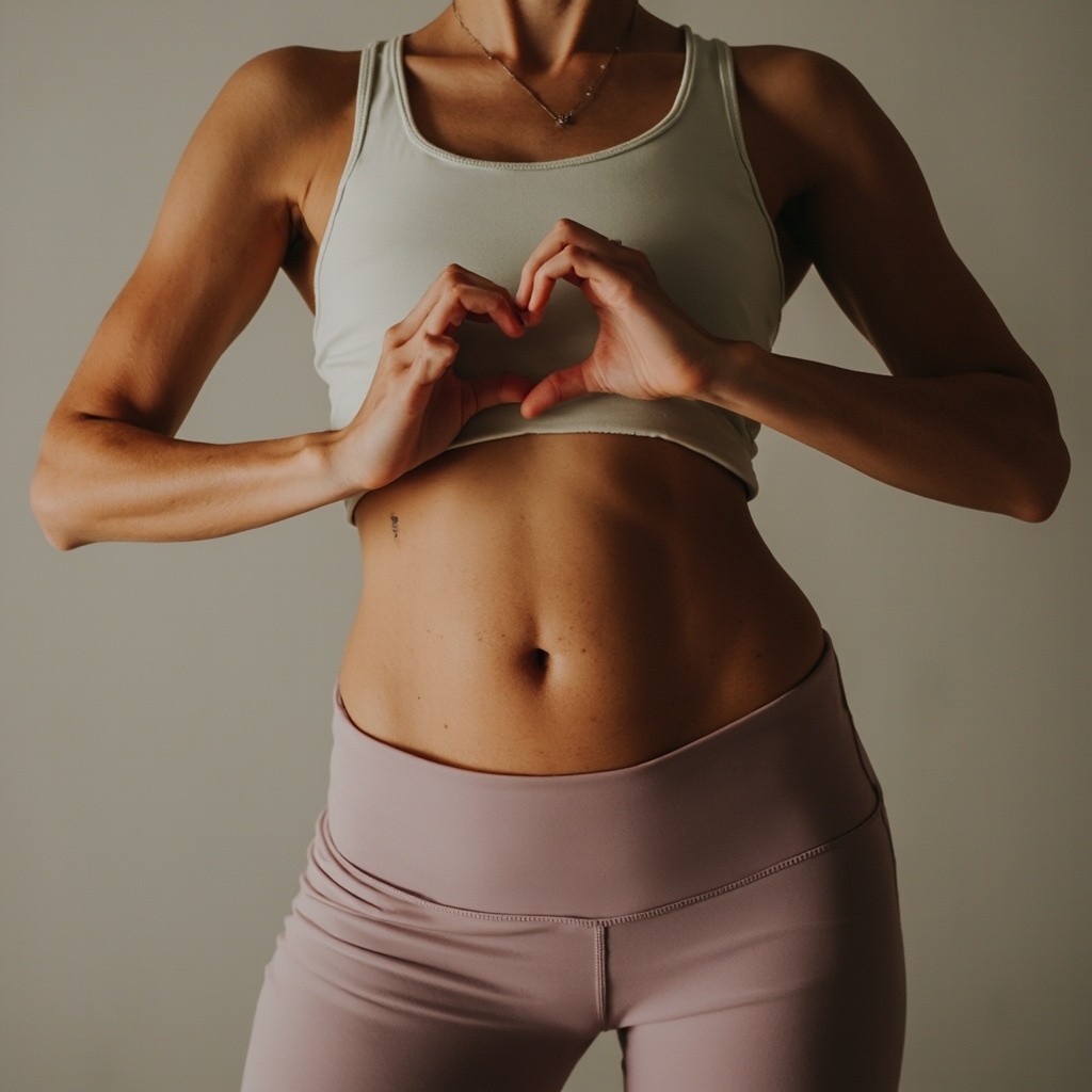 Woman Making Heart Shape with Hands Across Belly in Yoga Outfit
