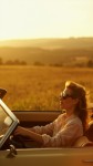 Side Profile of Woman Driving Vintage Convertible in Countryside During Golden Hour