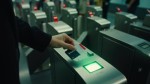 Woman's Hand Swiping London Metro Card on Contactless Terminal