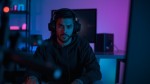 YouTube Broadcaster Close-up in Dimly Lit Room